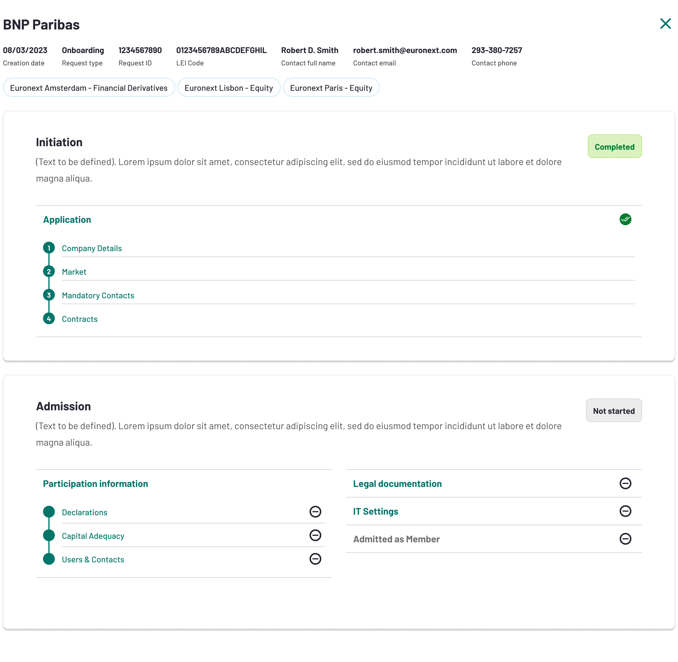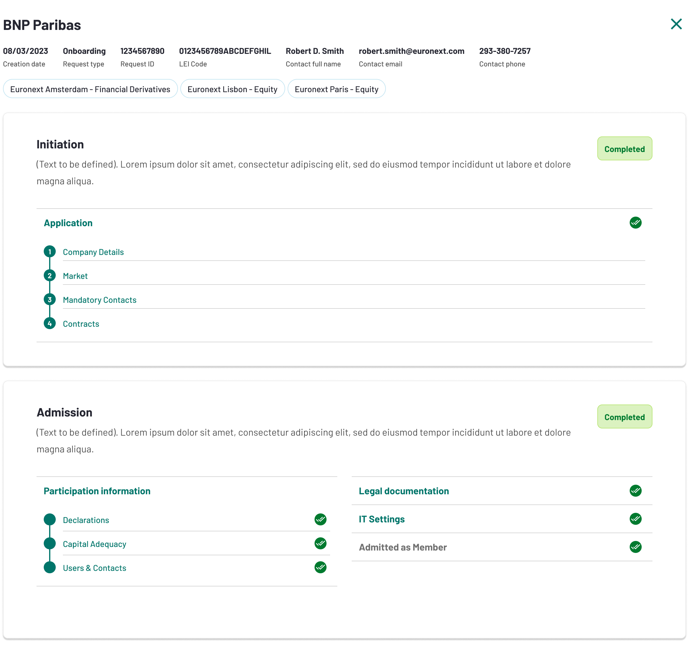 Euronext will review all the forms listed above and approve the Admission stage. Once this stage is approved, its status will change to Completed. The Applicant will receive an official Admission Letter as confirmation.