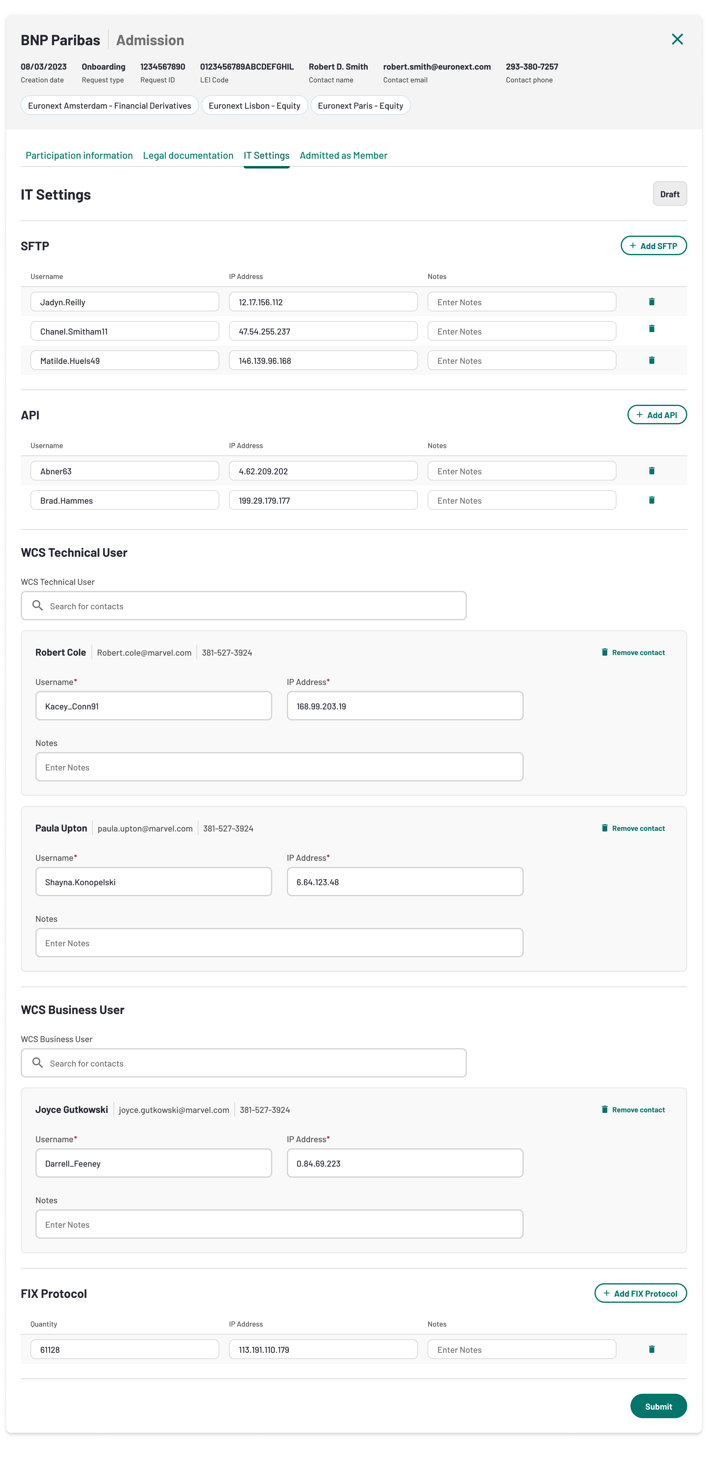 Once the IT settings form is submitted, its status will move from draft to pending review and will be reviewd by Euronext.
