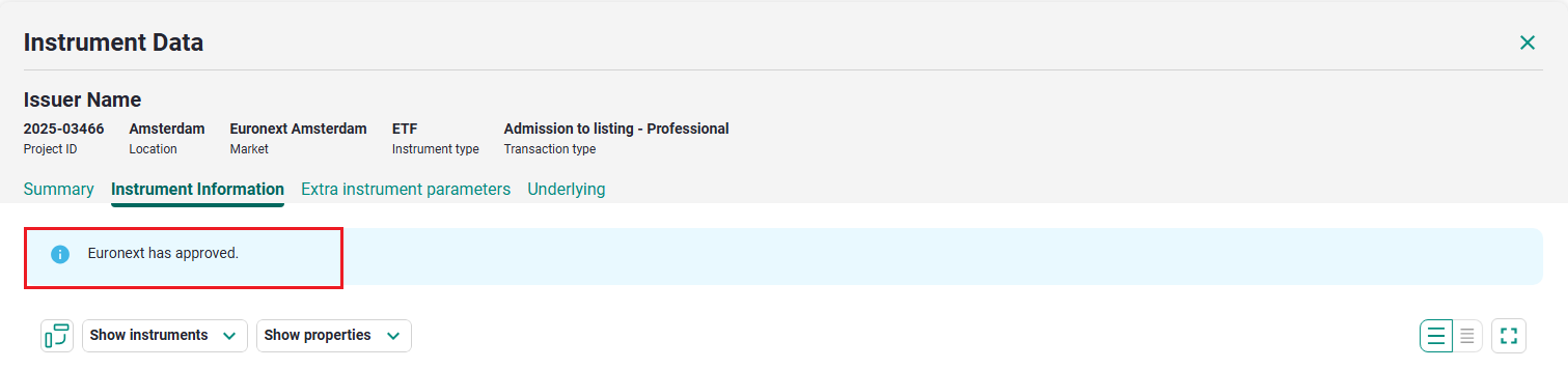 9. Instrument Information approval banner