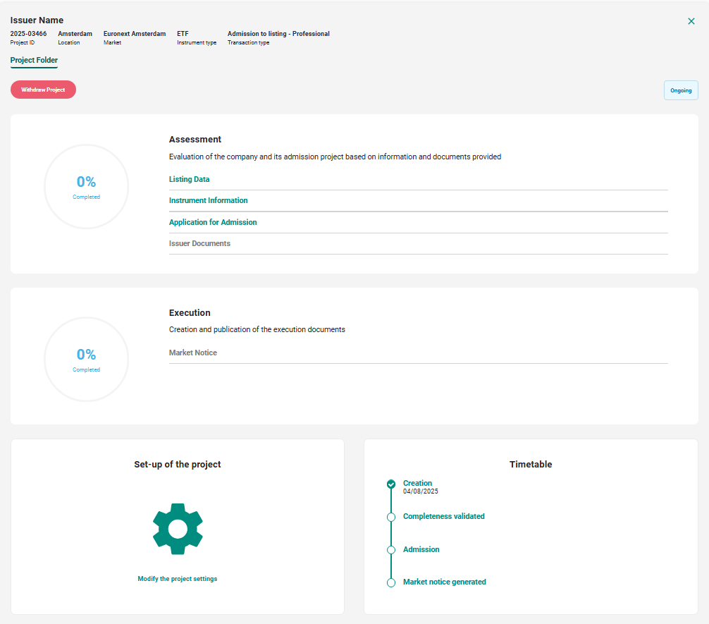 When Euronext operator validated all the steps of the Assessment Phase, the project status is "Admitted".