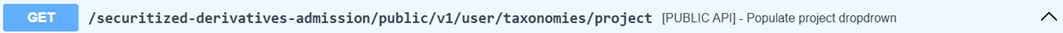 The GET /securitized-derivatives-admission/public/v1/user/taxonomies/project lets retrieve the taxonomies to complete the project.