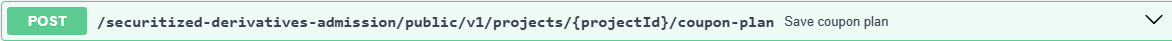 The POST /securitized-derivatives-admission/public/v1/projects/{projectId}/coupon-plan API allows you save the coupon plan.