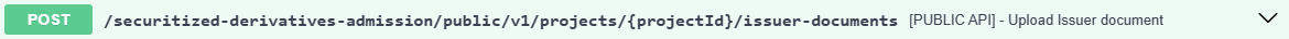 The POST /securitized-derivatives-admission/public/v1/projects/{projectId}/issuer-documents allows you to upload the issuer documents.