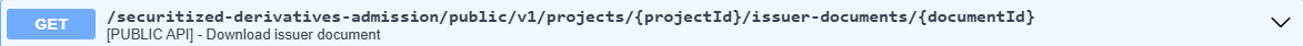 The GET /securitized-derivatives-admission/public/v1/projects/{projectId}/issuer-documents/{documentId} lets you download the documents.