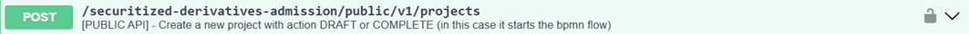 The POST /securitized-derivatives-admission/public/v1/projects API lets you create a new project.