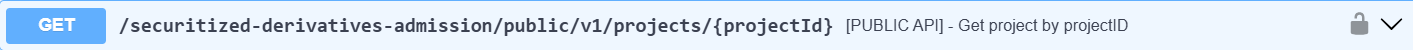 The GET /securitized-derivatives-admission/public/v1/projects/{projectId} API lets you retrieve the project data.